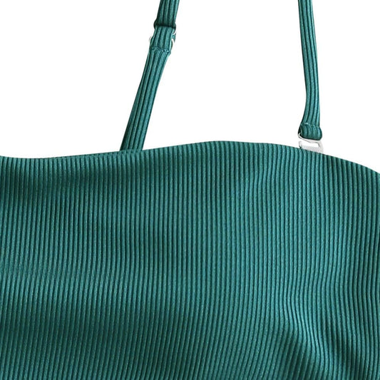 Women Textured Bikini with Removable Straps, High Waisted Bandeau Swimsuit Two Piece Bathing Suits (Peacock Blue-Ribbed,M)